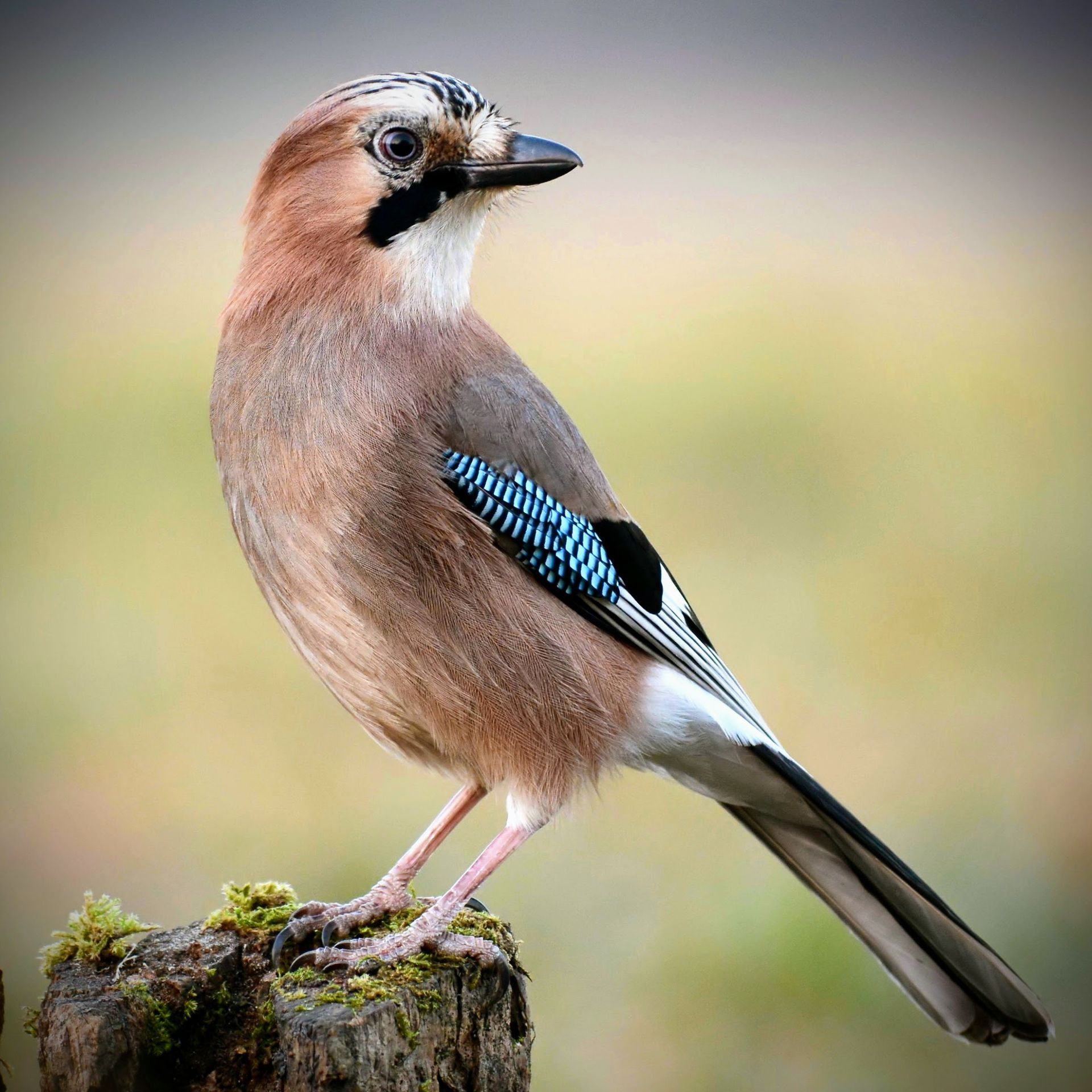 Charakteristische Merkmale/Aussehen: Charakteristisches Gefieder, Körper überwiegend braun bis rosabraun/rostrot gefärbt, dabei trägt der Eichelhäher einen blauen Flügelspiegel. Scheitel weißlich mit schwarzer Strichelung. Scheitelgefieder aufrichtbar. Der weiße Bürzel ist im Flug gut zu sehen. Schwarzer Bartstreif und weiße Kehle. Am Flügel hellblaues, schwarzgebändertes Feld.