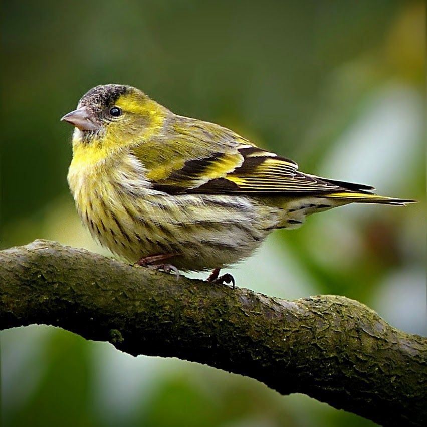 Charakteristische Merkmale/Aussehen: Grüngelbe Färbung an Oberseite und Brust, Unterseite heller gelb, dunkle Strichelung an Rücken und Bauch ist gut erkennbar. Männchen mit schwarzer Stirn, Scheitel und Kinn. Breite gelbe Flügelbinden, im Flug gut zu sehen. Schwanzfedern gelb gerändert und am Ende deutlich eingekerbt.
