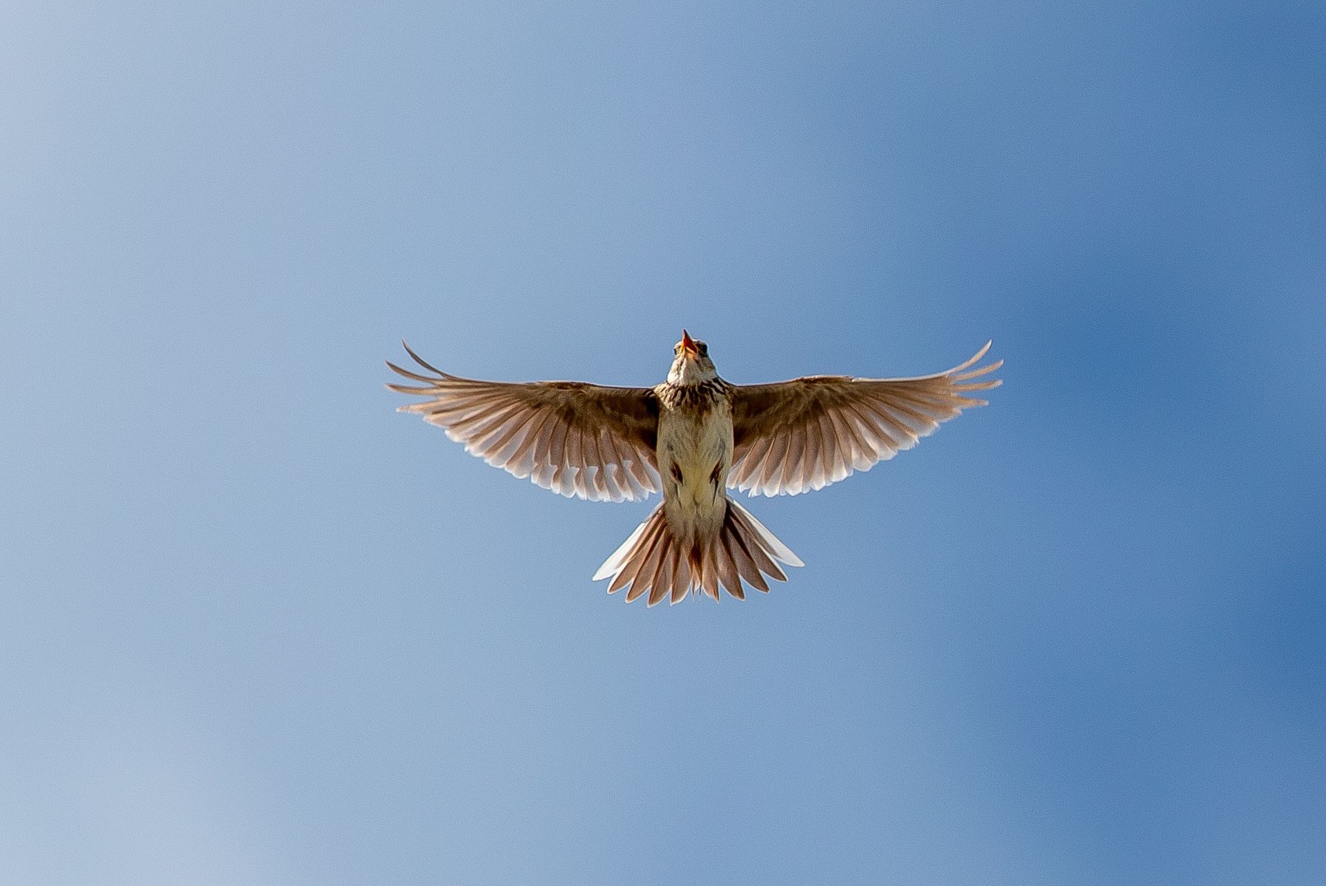 Gefährdung: Die Feldlerche ist gefährdet aufgrund der intensiven Landwirtschaft und dem damit verbundenen Einengung an Lebensraum