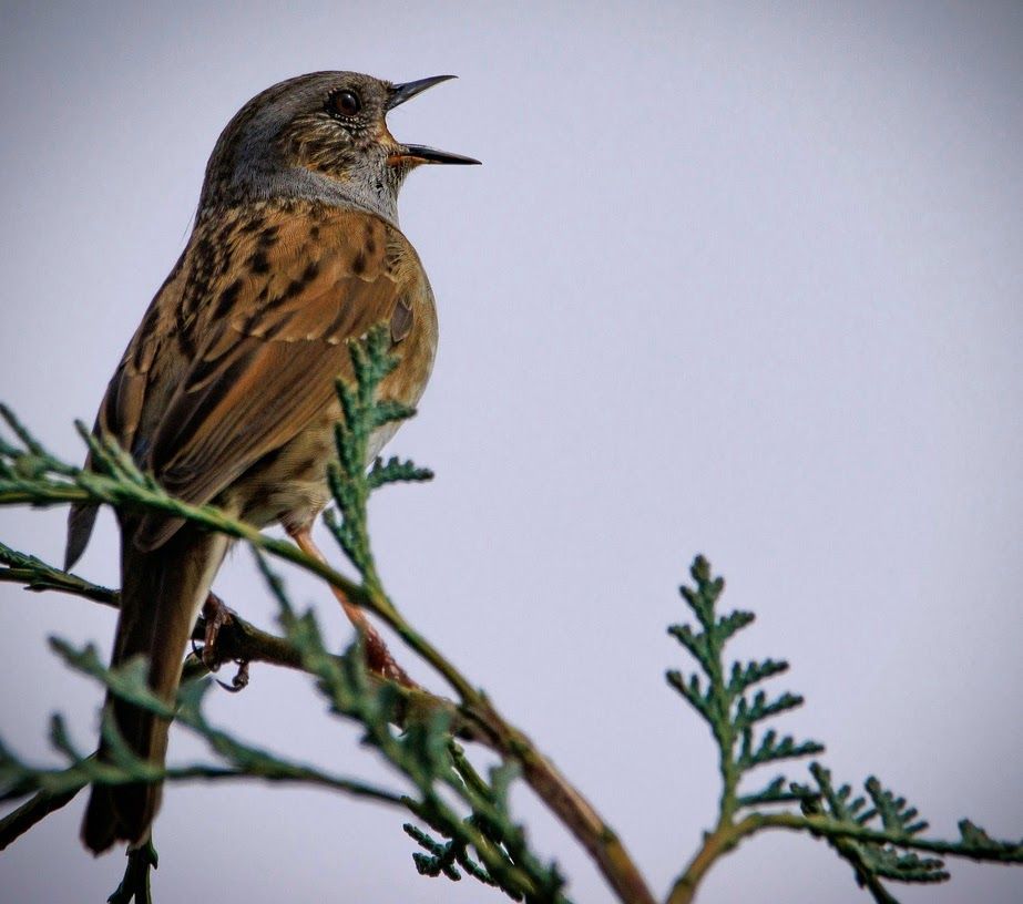 Gesang/Rufe: Der Gesang wird meist von der Spitze eines Busches oder Baumes vorgetragen. Der Gesang der Heckenbraunelle ist nicht sonderlich laut und besteht aus einer Folge von zwitschernden Tönen wie „switüli switüli swoliswoliti“. Unauffälliger Ruf, leise klingend „tihihihihi“, bei Gefahr oder Erregung laut pfeifend „tih“.