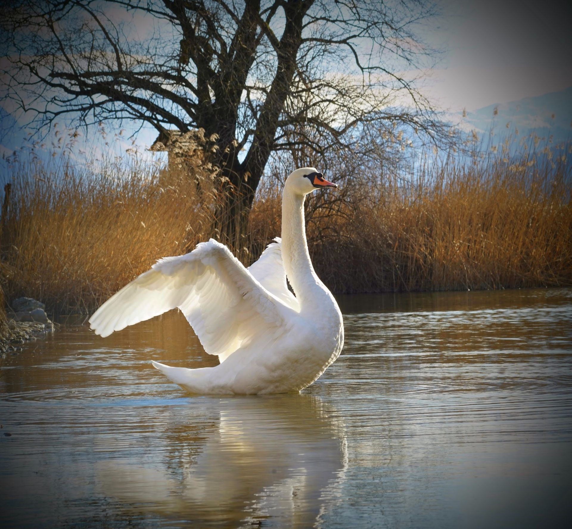 Gesang/Rufe: Durch das Schlagen der Flügel wird ein pfeifendes Geräusch produziert, was wohl das markanteste Geräusch am Höckerschwan ist. Ansonsten ist er eher stumm.