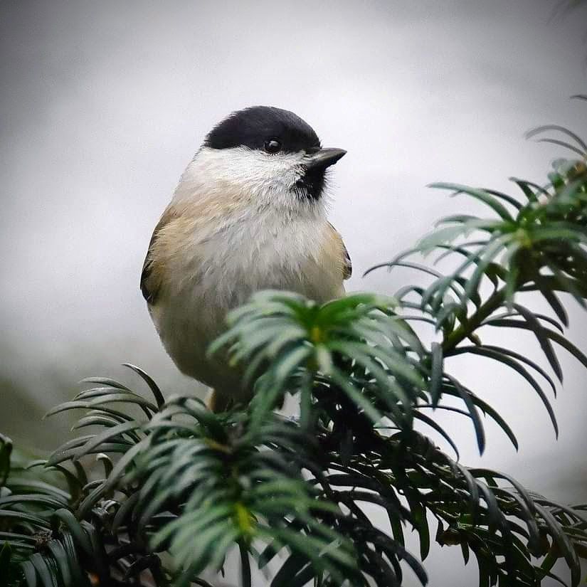 Verwechslungsgefahr mit Weidenmeise, Unterscheidungsmerkmale: Der Kehlfleck der Sumpfmeise ist klein und scharf abgegrenzt, während der Kehlfleck der Weidenmeise breiter und an den Kanten unscharf ist. Zudem zeigt die Sumpfmeise einen weißen Fleck an den Schnabelkanten, der sie weiter von der Weidenmeise unterscheidet. Das schwarze Gefieder am Kopf ist bei der Sumpfmeise glänzend, bei der Weidenmeise matt. Außerdem hat die Weidenmeise einen kleinen „Stiernacken“, weshalb Richtung Nacken hin die weißen Federn von der Wange nach hinten verlaufend, etwas struppiger erscheinen. Ein weiteres Unterscheidungsmerkmal ist der Gesang, der es ermöglicht, diese beiden Arten klar auseinanderzuhalten.