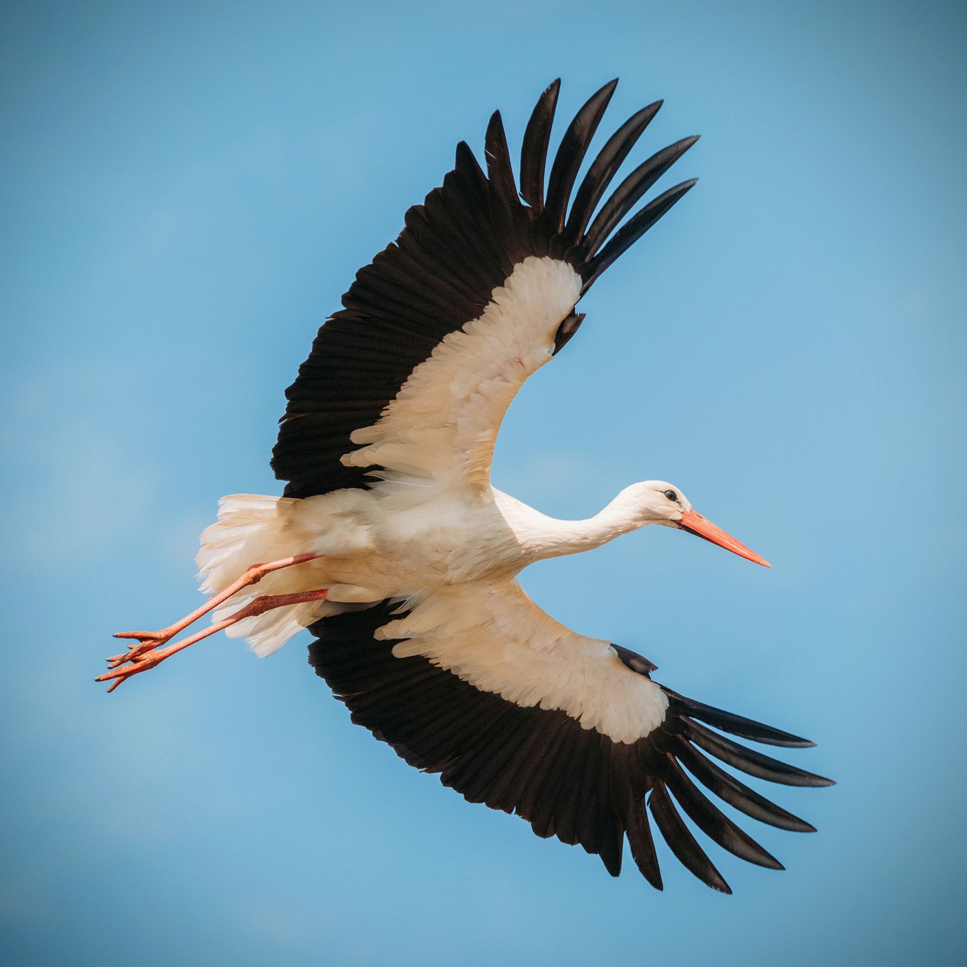 Charakteristische Merkmale/Aussehen: Weiß an Kopf, Hals und Brust und Schwanz, schwarz am unteren Rücken und ca. ¾ der Flügelfedern sind auch schwarz. Beine und Schnabel rotorange. In der Flug-Silhouette gut zu unterscheiden zum Graureiher: der Storch zieht im Gegensatz zum Graureiher den Kopf nicht ein und fliegt mit ausgestrecktem Hals.